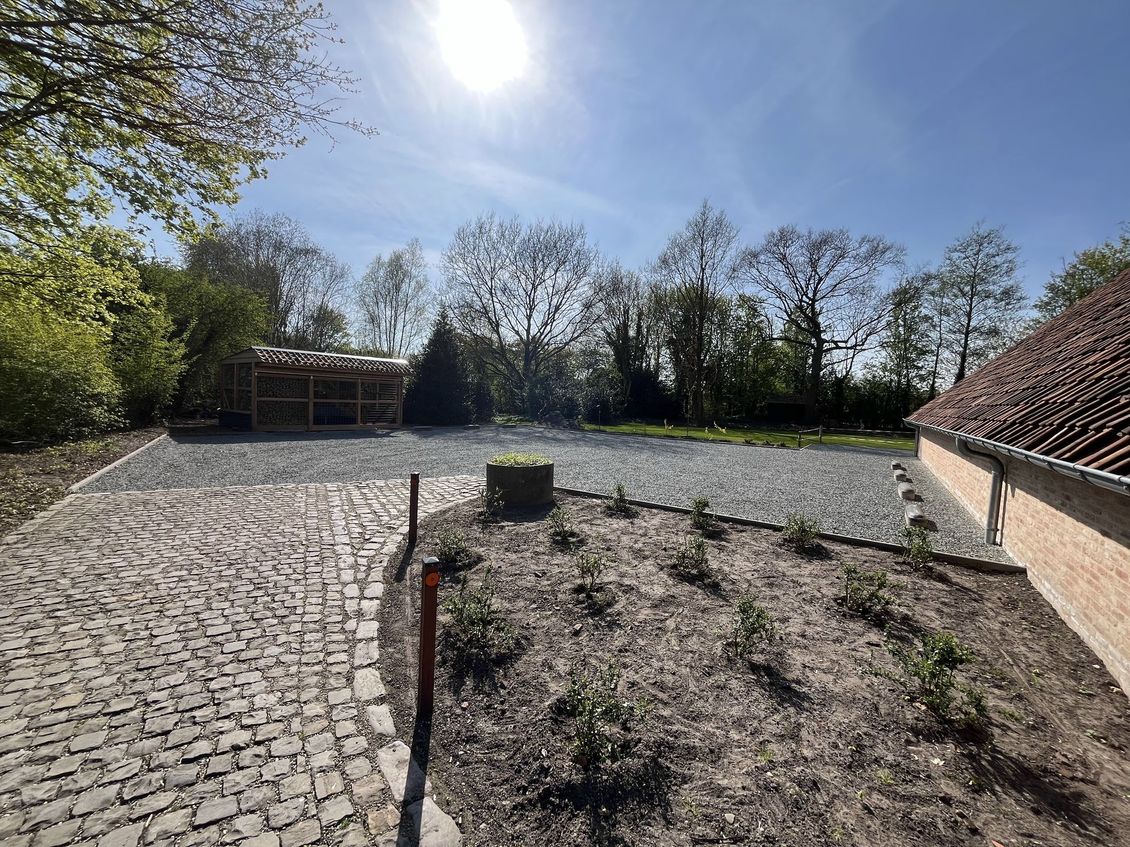 Achter de schuur is er een parking voorzien voor 7 auto's.